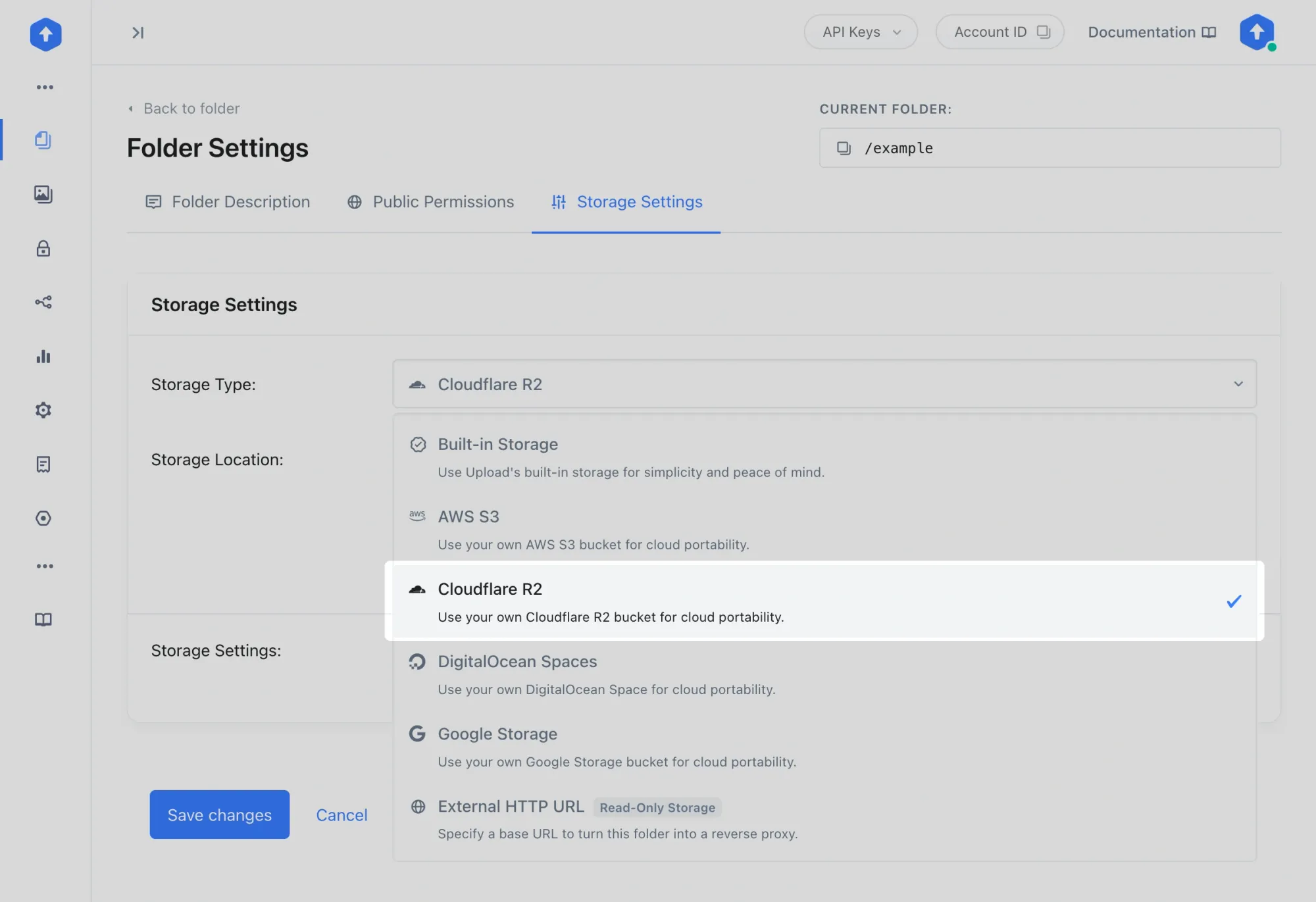 - Select "Cloudflare R2" as the storage type