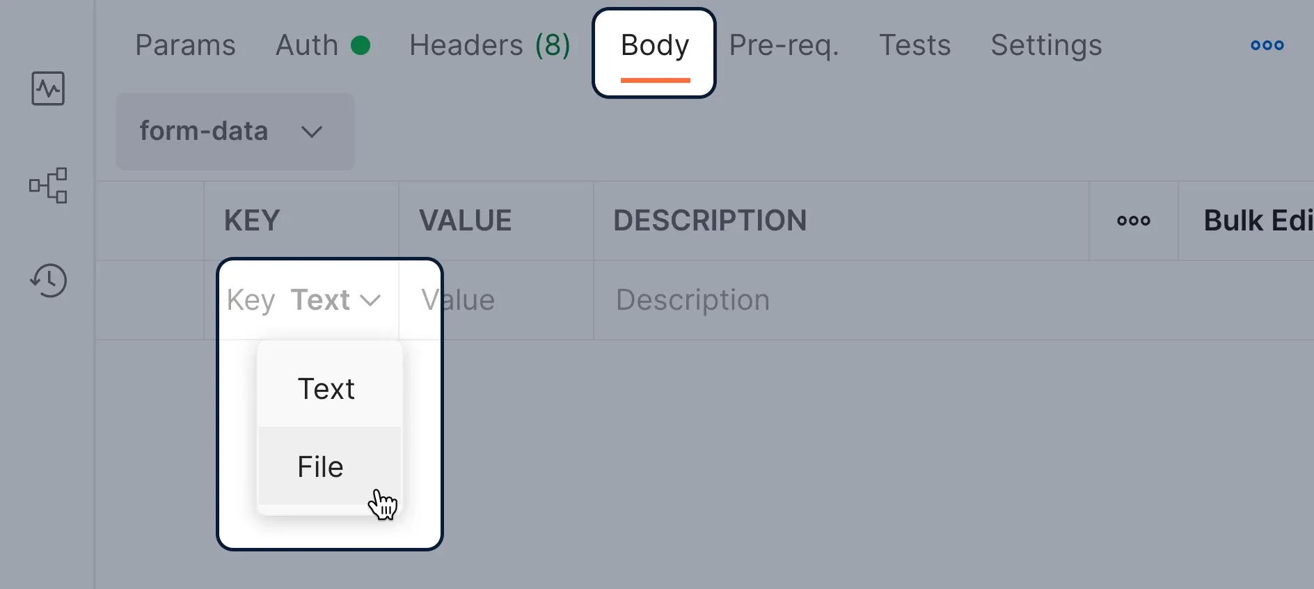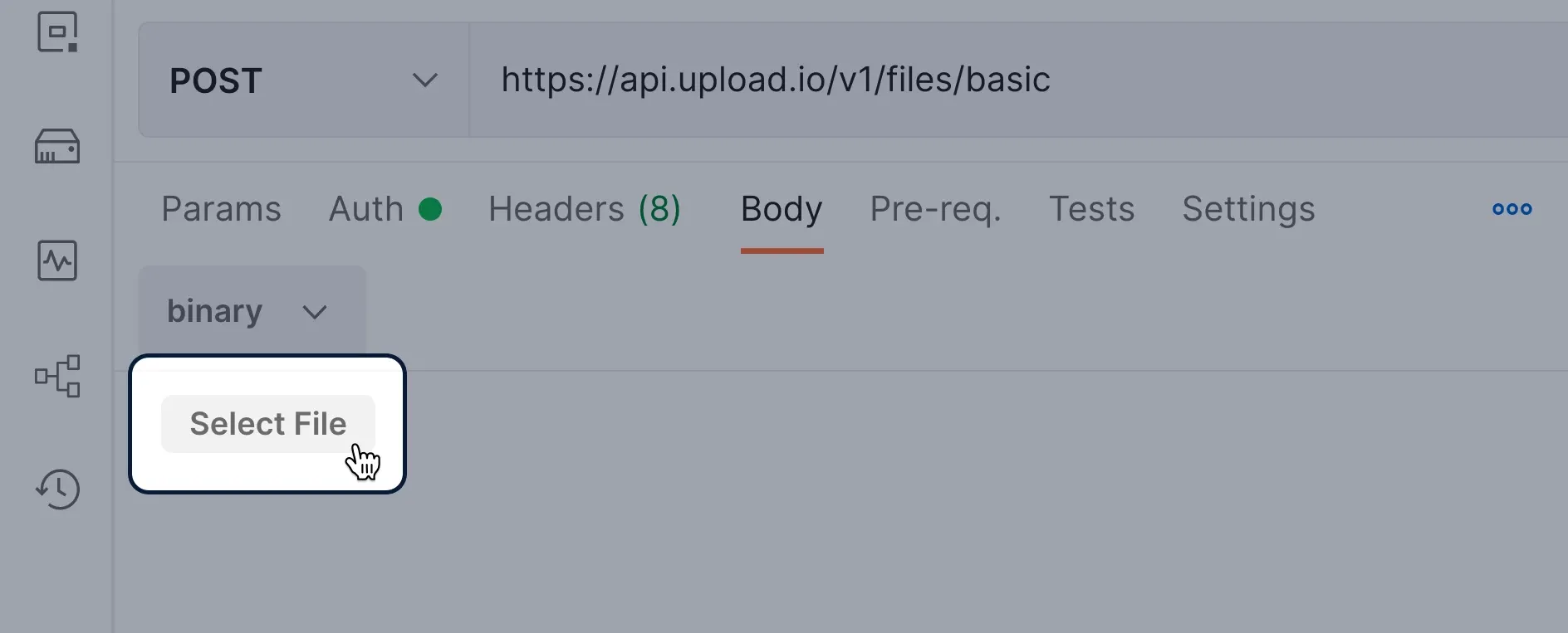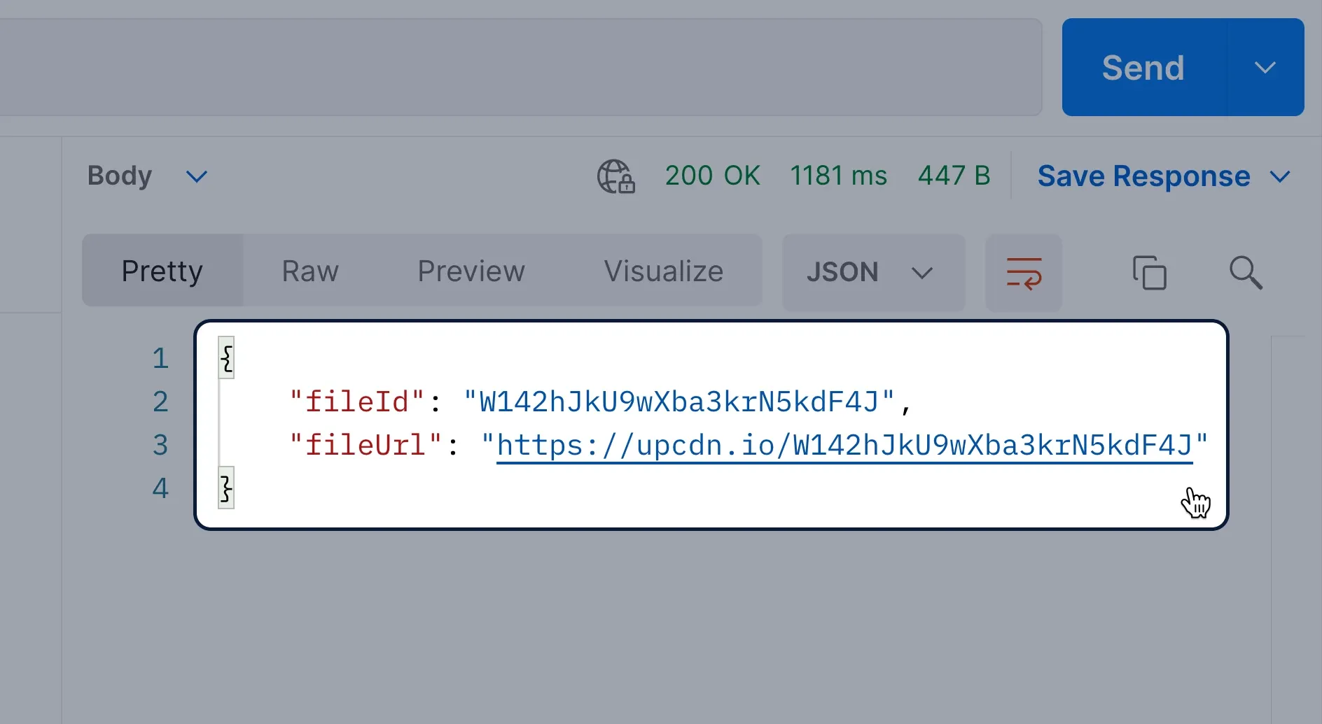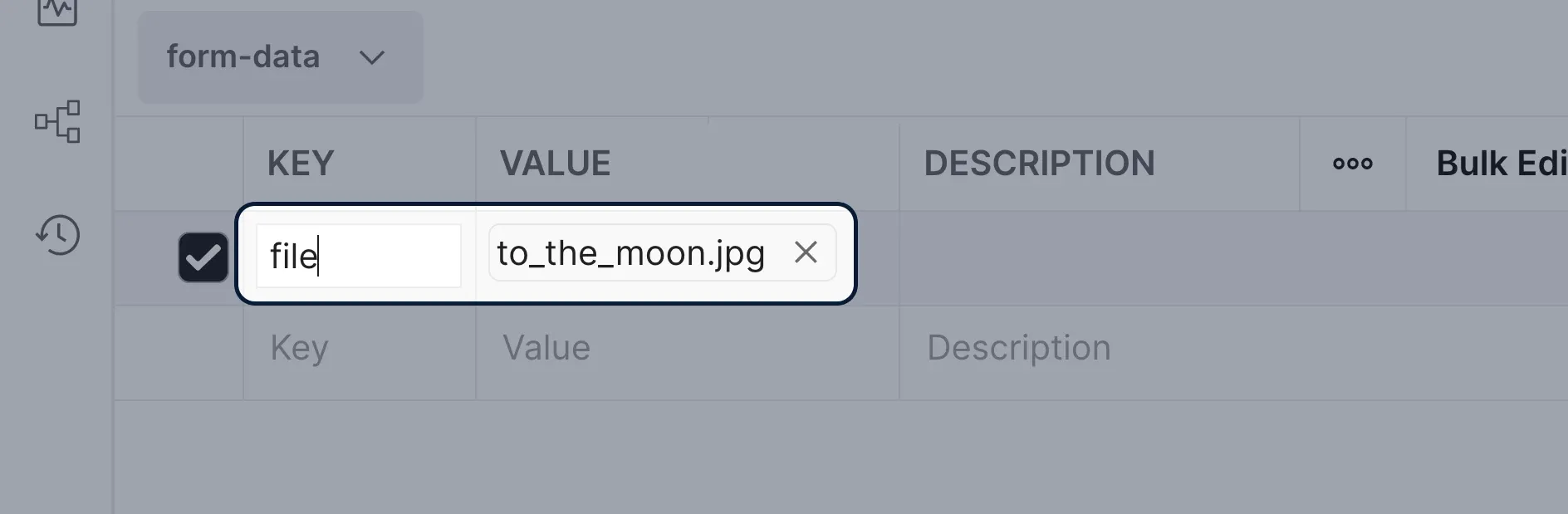 "file" arbitrarily here, as the Bytescale API accepts any key. Your API will likely expect a specific key, so make sure you check before simply entering "file"!5.5 – Finally, click "Send":