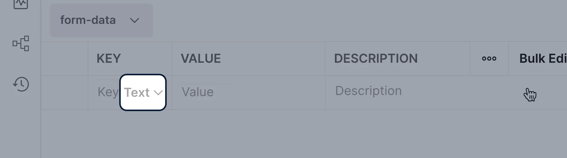 - Select "File" from the dropdown in the "Key" column – this only appears on hover!