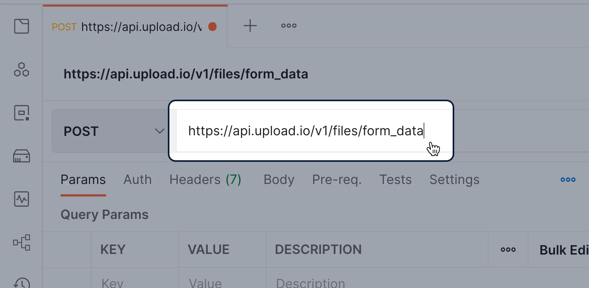 We're using https://api.upload.io/v1/files/form_data in this example: